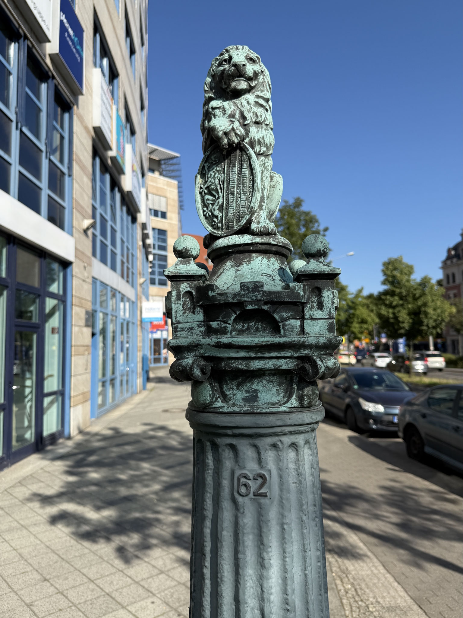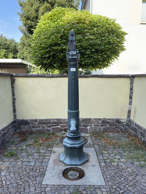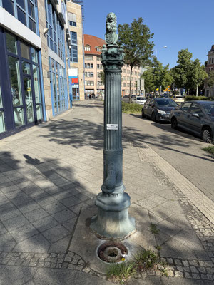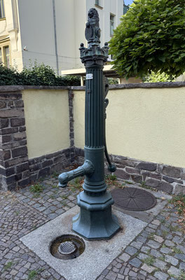 Eine schön restaurierte, sehr gut erhaltene Pumpe des Types "kleiner Löwe" finden wir in Innenstadtnähe unweit des Friedrich-List-Platzes.