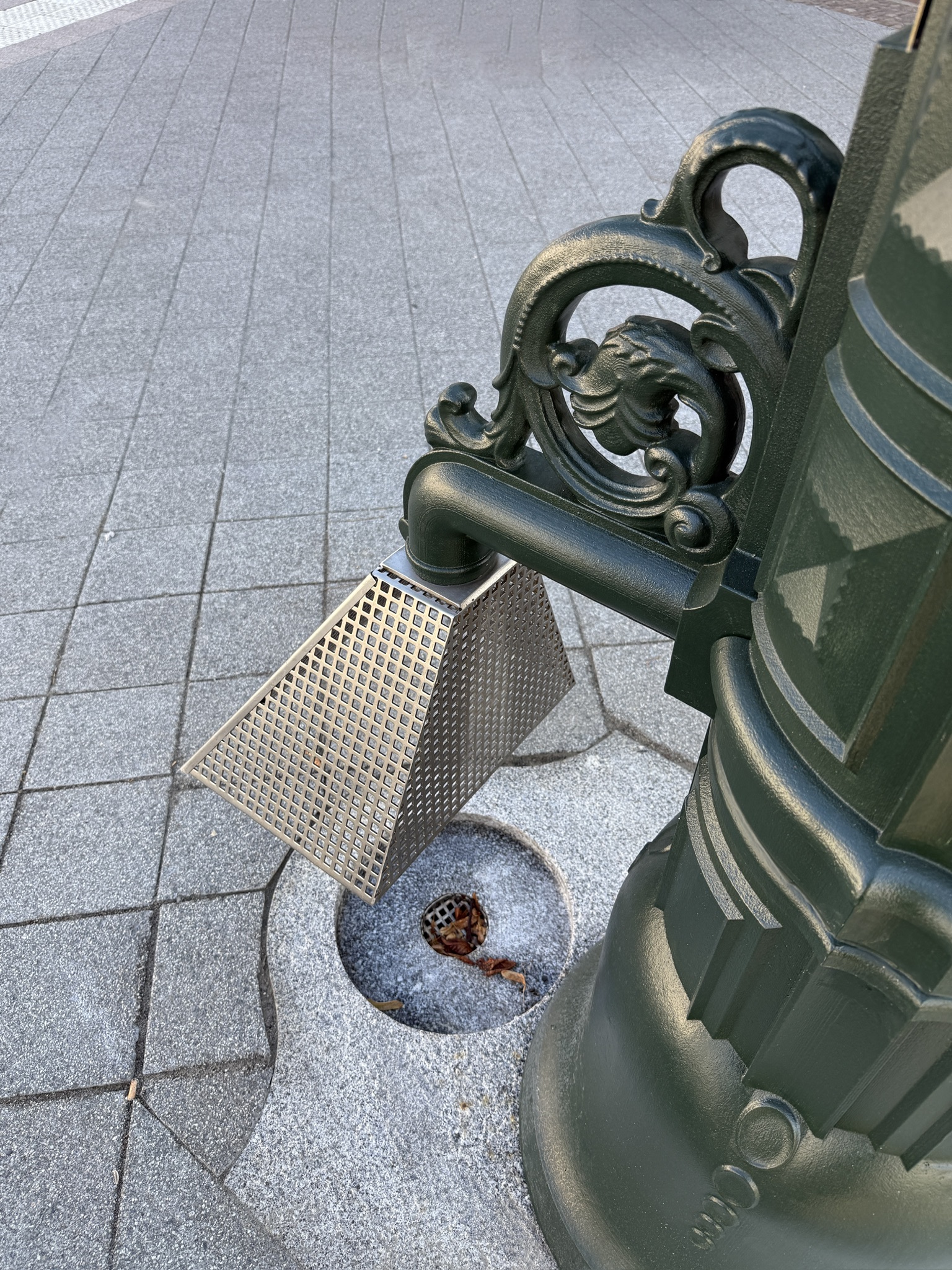 Der wirkliche Sinn dieses Gatters ist nicht augenscheinlich. In meinen Augen ist es ein unschöner Anbau an einem historischen Stadtmöbiliar. Dann hätte man lieber auf die extra Brunnenbohrung